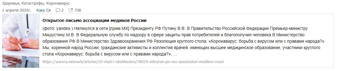 Под таким заголовком опубликовано как бы письмо медиков Путину и Мишустину.