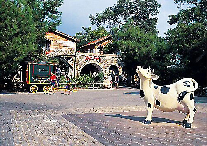 Про этот отель на ЯПе уже писали, очень харизматичное было место, сейчас он заброшен, но тогда имя ему было НАТУРЛЕНД, а чуть позже ВЕРА РЕЗОРТ. Делился на три зоны, аква, форест и кантри. Аква была типичным пляжным отелем Кемера, корпус Фореста прятался на горе в сосновом лесу, а на другом склоне располагались каскадом блоки Кантри, где люди жили с видом из окна на грядки или внутрь парника... В гору вёз маленький фуникулёр, а под гору и пешком было нормально. Территория была где-то квадратный километр.