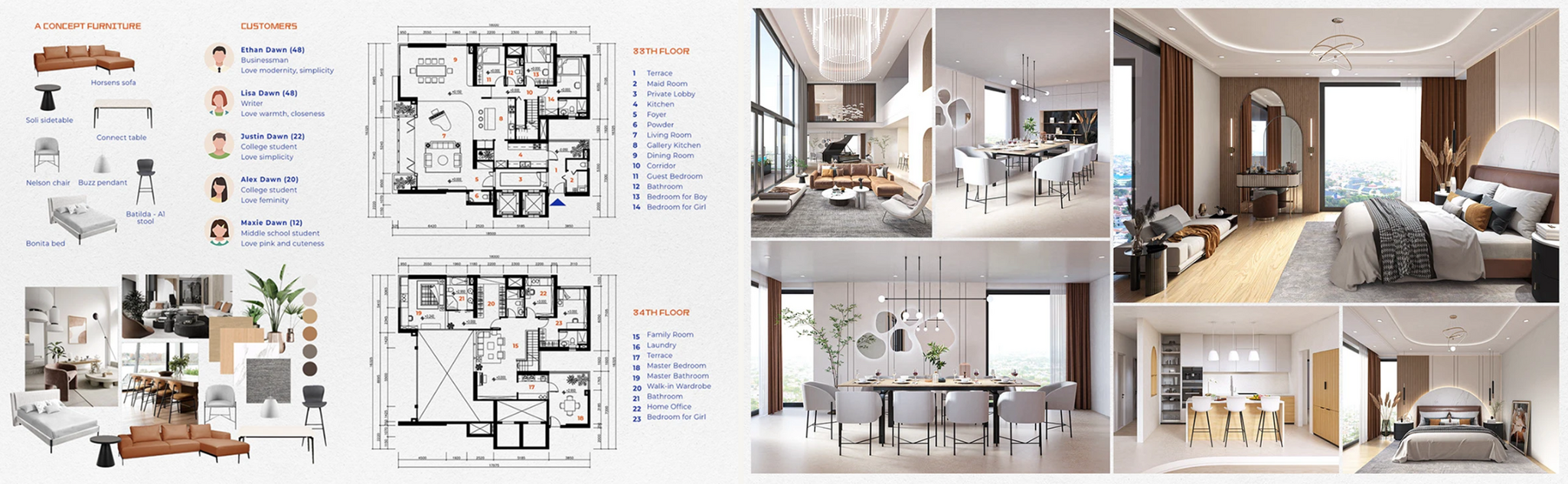 Коллажи и подборки — создайте подборки материалов, мебели и цветов, чтобы показать вкус и чувство композиции. Даже без реального ремонта видно, что дизайнер может создавать гармоничные решения.