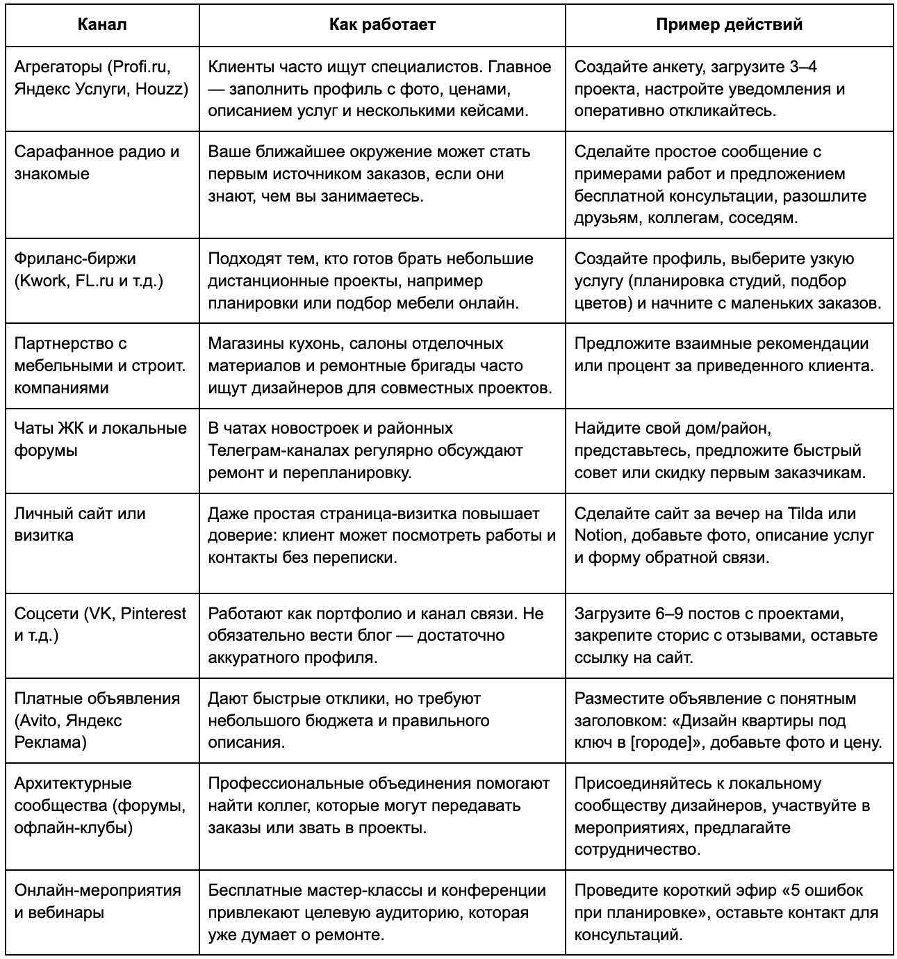 В сфере дизайна интерьеров недостаточно быть просто хорошим специалистом. Идеи и вкус, конечно, важны, но сами по себе редко приносят стабильный доход и поток заказов. Чтобы не зависеть от случайных рекомендаций и не ждать чуда, дизайнеру нужна четкая система поиска новых клиентов.