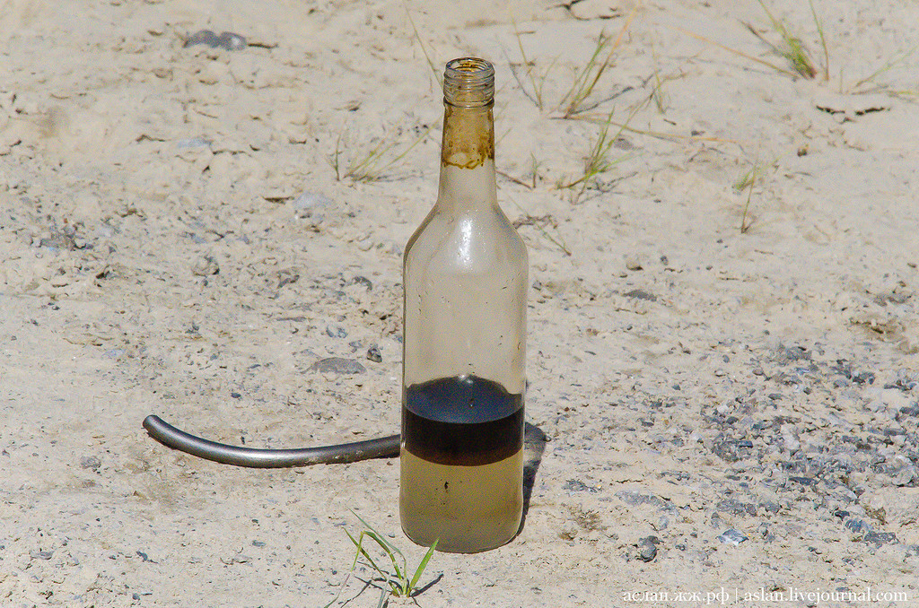 Большая часть скважин, которые были в разработке с советских времен обводнились, и при добыче жидкость, которая выходит из скважин выглядит в лучшем случае так - примерно 20-30% - нефть, остальное вода. Далее я разъясню что это значит и расскажу подробнее о технологии добычи нефти.