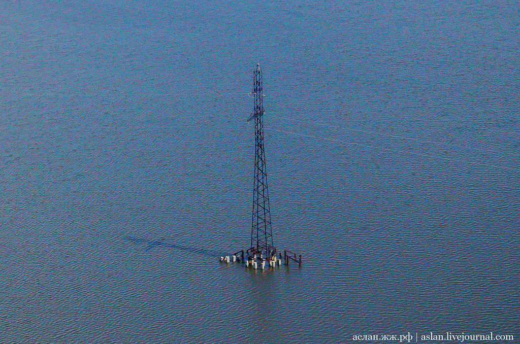 Так выглядят насыпные нефтяные острова. Русские научились делать их за несколько десятилетий до арабских шейхов). Представляю себе сколько сил и денег было вложено на освоение месторождения.