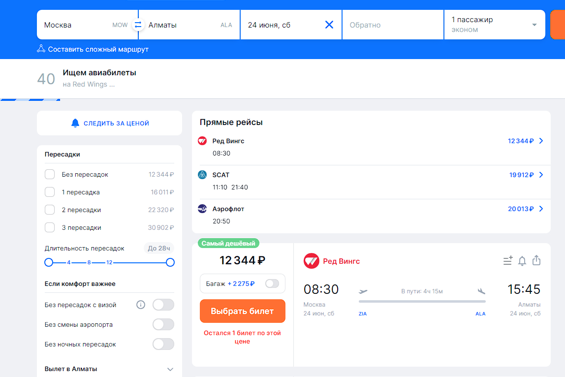 Цены ж постоянно меняются, у меня к примеру вышло 8к в одну сторону Скатом, Аэрофлот на ту же дату стоил 15, а если сейчас посмотреть на июль, то там Аэрофлот можно и за 11 найти