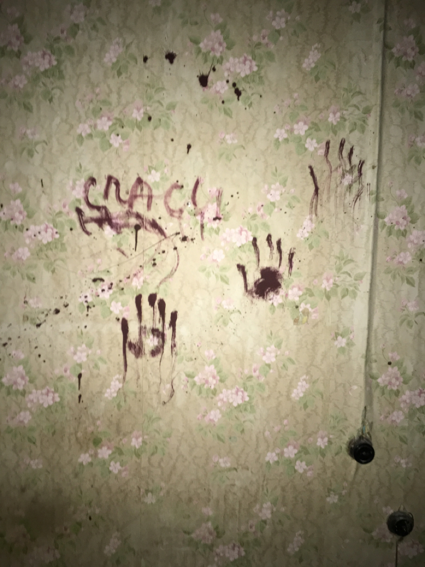 Потом я предложил им съездить посмотреть на дом. В общем, довёз я их туда (делая вид, что сам в первый раз), зашли мы через подвал и начали шариться с фонариками. На первом этаже мы неожиданно натыкаемся на старую потрепанную куклу (нашёл на барахолке). Я говорю им не трогать её. Затем медленно продвигаемся на второй этаж. Там «обнаруживаем» рояль и я специально лучом фонаря акцентирую их внимание на том, что стул перед роялем пустой, мы идём дальше в следующую комнату. Всё происходит в темноте и тишине, разговоры шепотом. Вдруг мы слышим отчетливо звуки рояля (друг все это время находится в здании). Мы возвращаемся (я их с трудом тащу) к роялю, а там на стуле лежит та самая кукла с первого этажа. Сёстры в панике начинают искать выход, я им подсказываю неверное направление и мы попадаем в комнату с «окровавленными» стенами, тут из соседней комнаты (из динамика) начинает доноситься приглушённый детский смех...