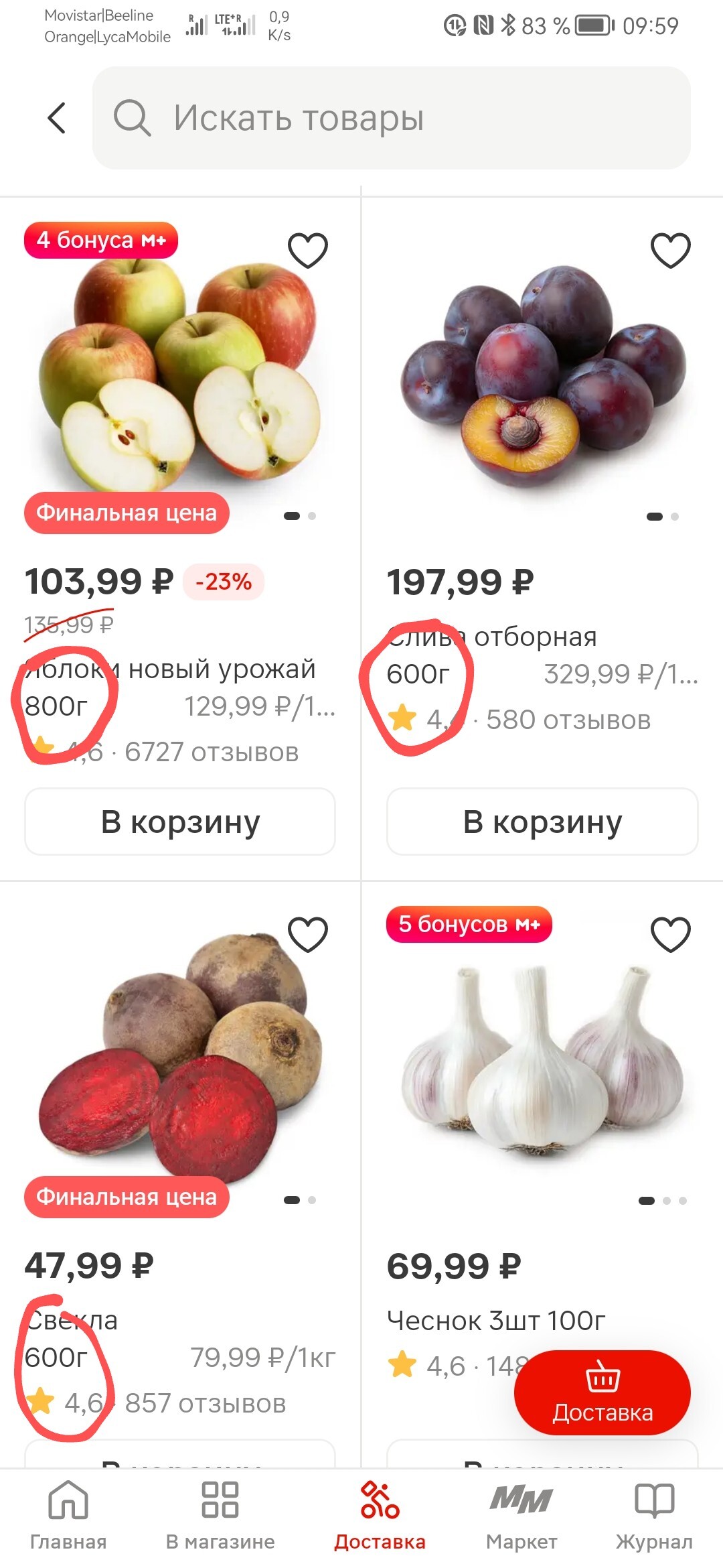 но Магнит и тут придумал, как можно замаскировать стоимость - в каталоге их приложения стоимость теперь указывается за 400-500-600 грамм. И это развесные товары, не упаковки!
