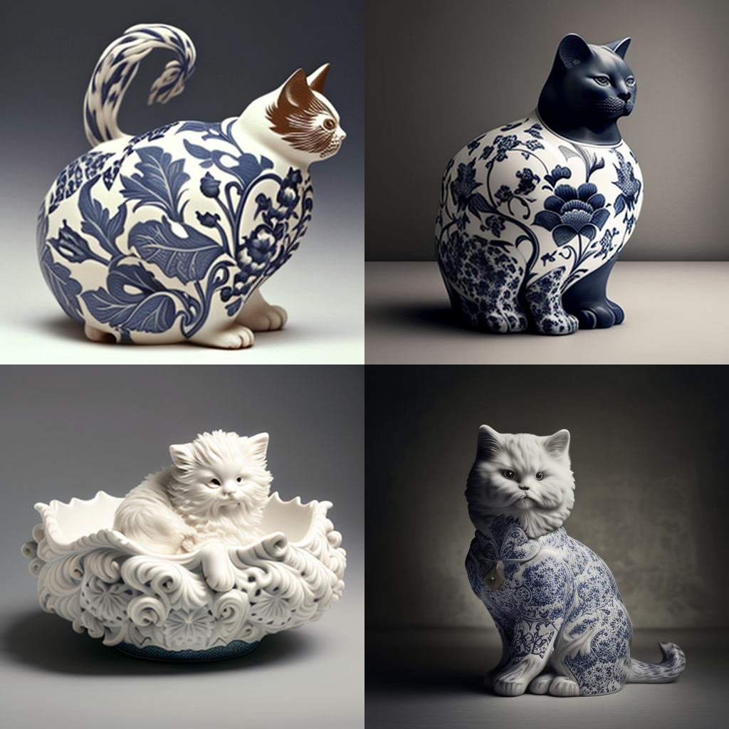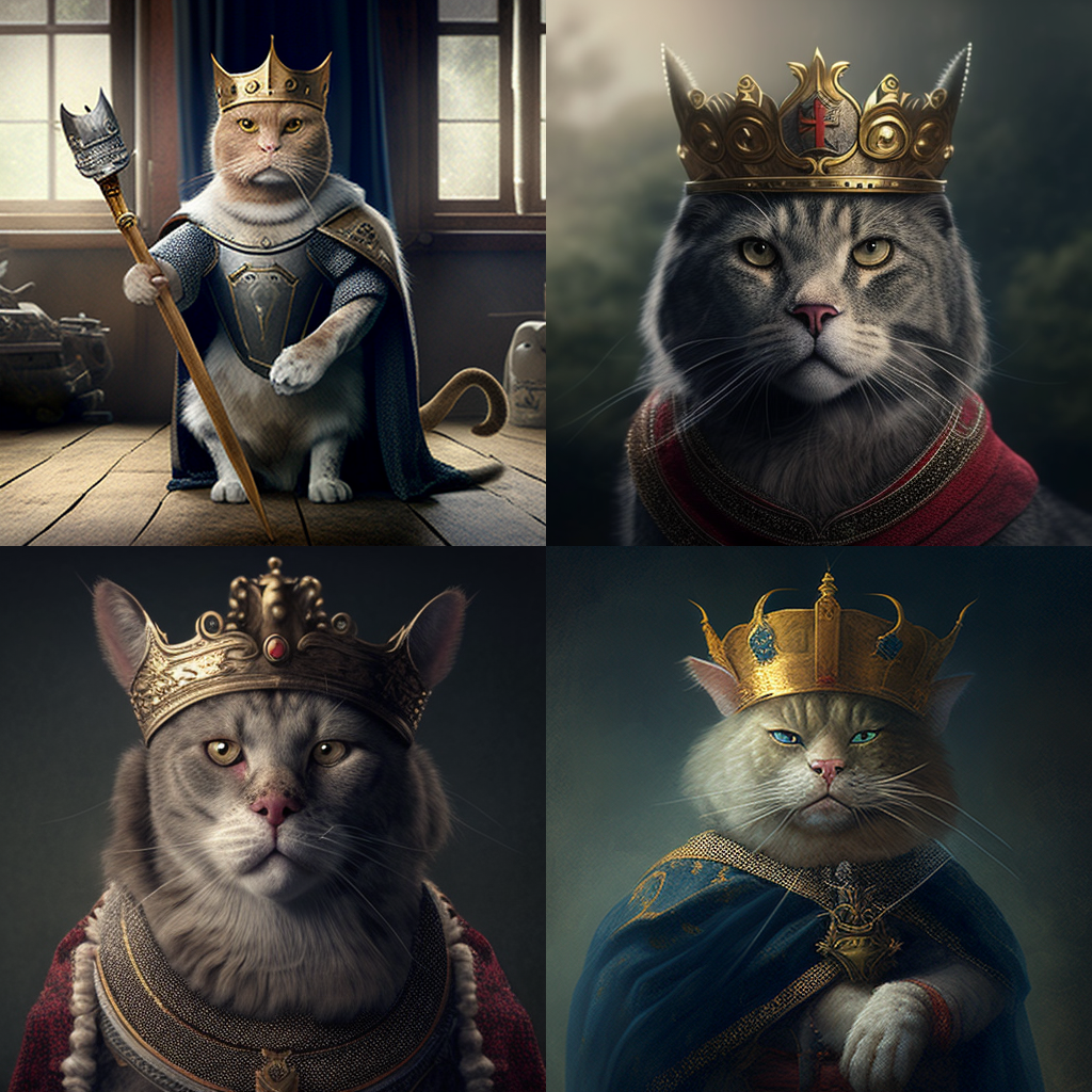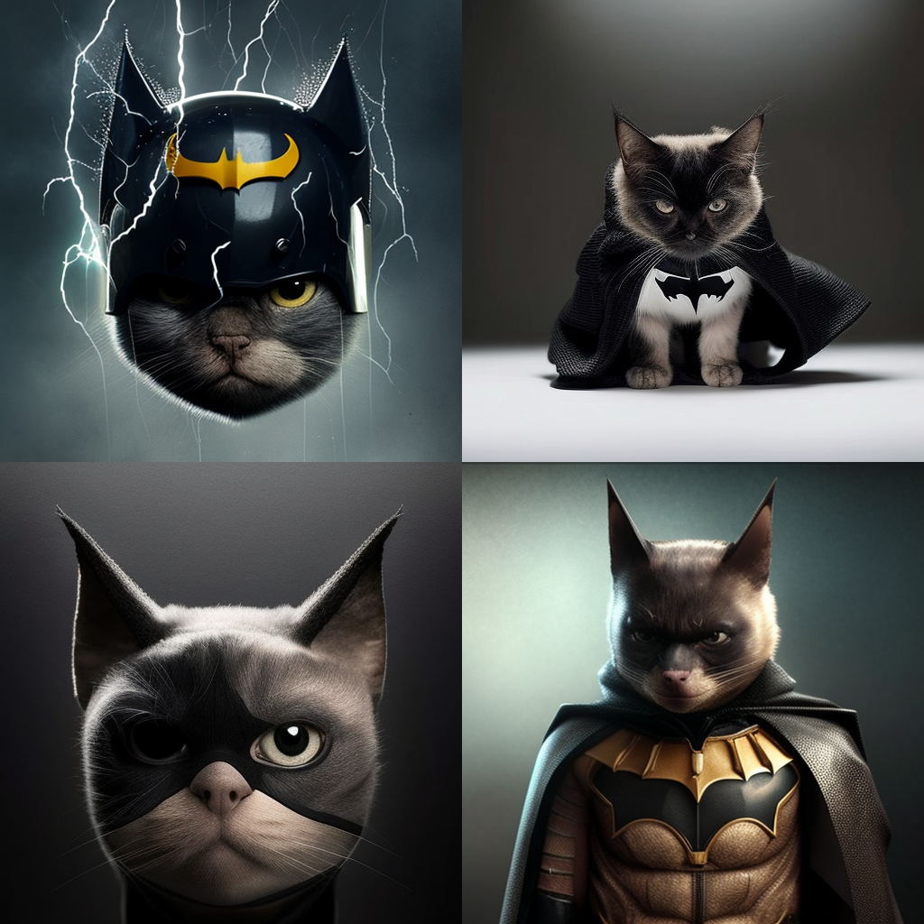 Нейросети обучают на огромной базе изображений из сети. Картинок такого типа в интернете много, поэтому нейросети легко их сгенерируют. Правда, если вписывать в команду исключительно один объект, то результаты вряд ли порадуют разнообразием. Поэтому попробуйте, например, совместить два объекта и получить необычный концепт: кот-геймер, кот-бэтмен, кот-киберпанк-монах.