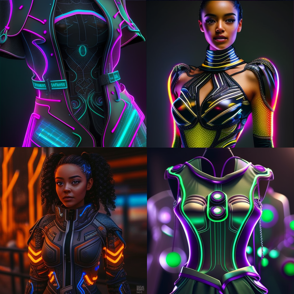 Футуристичная одежда со светящимися и красочными деталями / futuristic clothing with glowing and colorful details