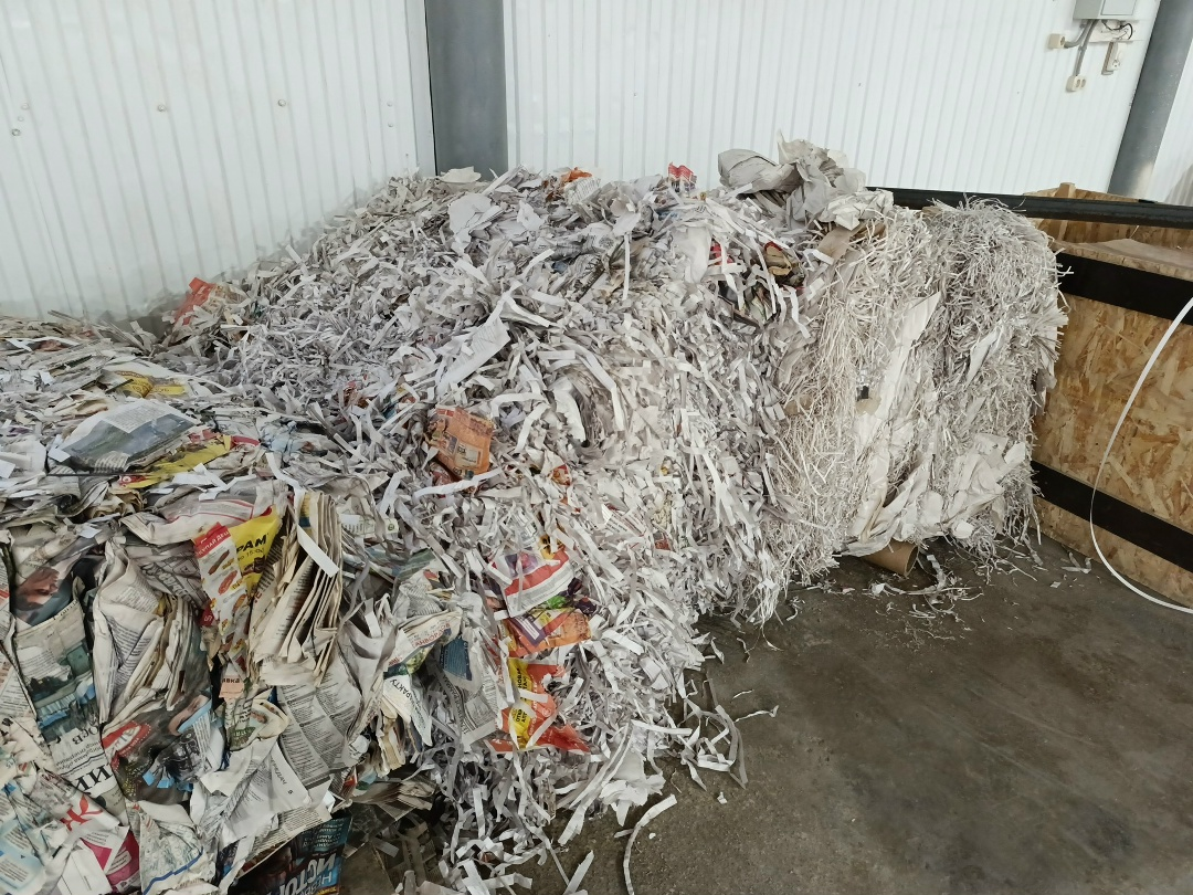 Далее бумага проходит поочередно еще 2 измельчения превращаясь с мелкую крошку.