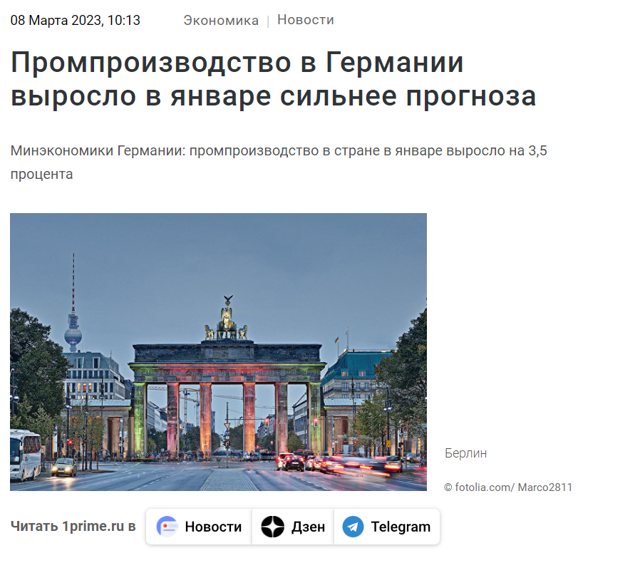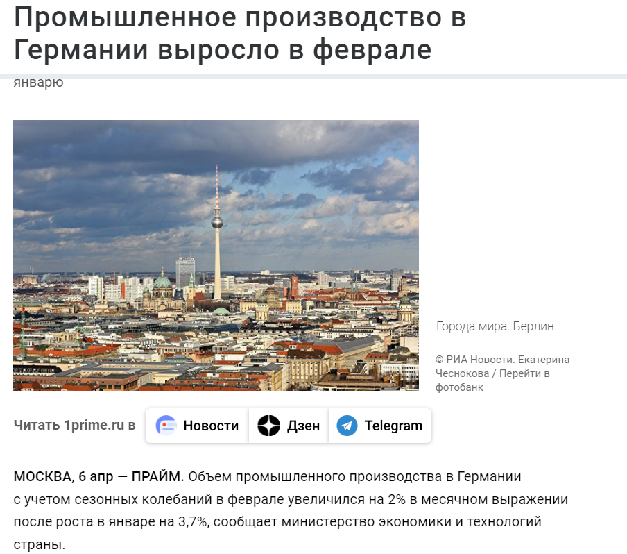 производящего избыточный объем солнечной и ветровой энергии а также от генерации на биогазе. Кстати объем промпроизводства в Германии с начала года показывает неплохой рост в январе на 3,5% а в феврале на 2%