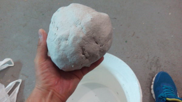 Потом добавляем моющее средство (любое), чтоб в процессе лепки, смесь к рукам не липла.