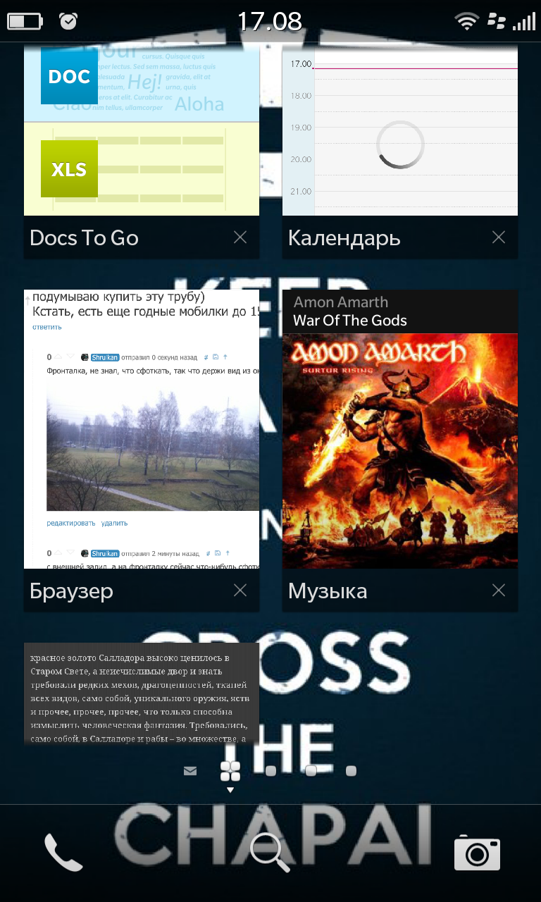 3. Диспечер приложений вмещает всего 4. Если экран 4 дюйма и больше - они будут здоровые. Неэффективное использование пространства, на том же андроиде - 9. Хотя если можно свайпать вбок, большие миниатюры могут быть плюсом.