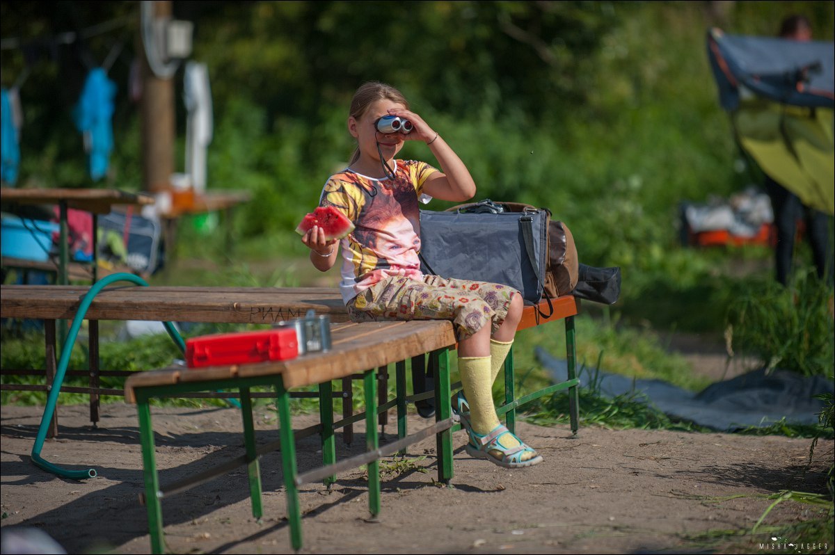Мы живем в палаточном лагере на берегу реки Оки ;)