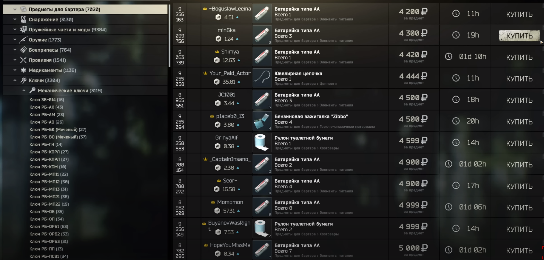 Всего в игре представлено 8 торговцев со своей специализацией. Некоторые, например Прапор и Лыжник могут иметь схожие специализации, но ассортимент все равно будет отличаться.