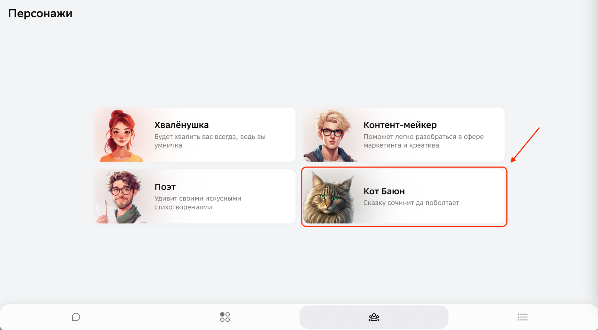 Для начала нужно перейти на сайт, нажать на персонажей в нижней строке и выбрать «Кот Баюн»