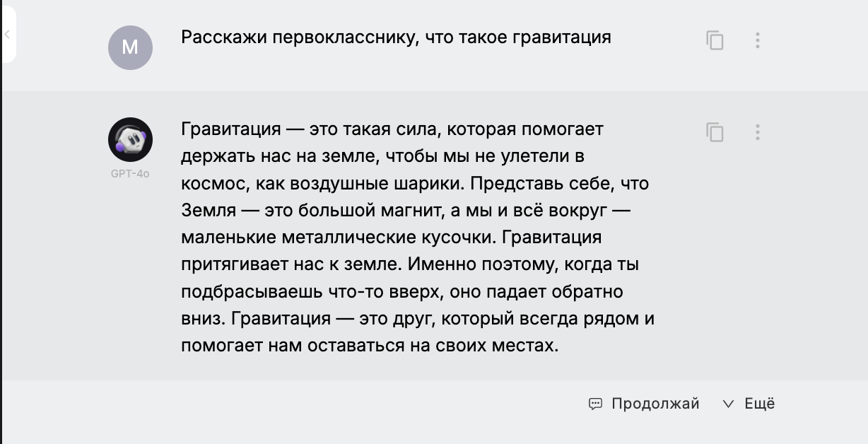 Когда дети растут, они задают много вопросов. Что такое гравитация? Почему трава зелёная, а небо голубое? Ответить на них поможет нейронка.