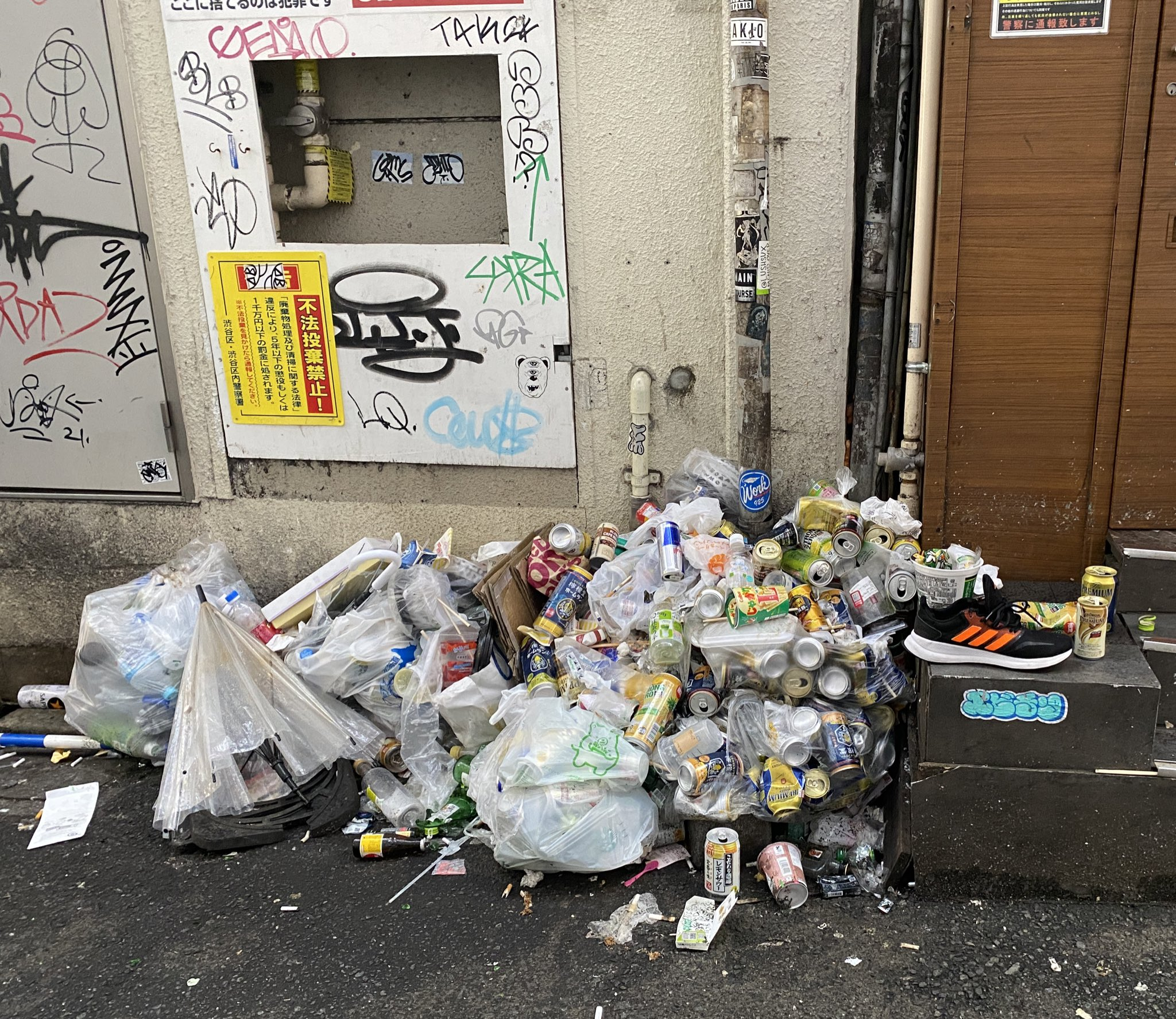 Другая проблема - это мусор. Токийские улицы перестали быть такими чистыми, как раньше. Везде мусор, банки валяются, обертки и куча бычков. По утрам в туристических местах гадюшник. Иностранцы не привыкли, что в Японии почти нет мусорных баков, и бросают мусор, где попало.