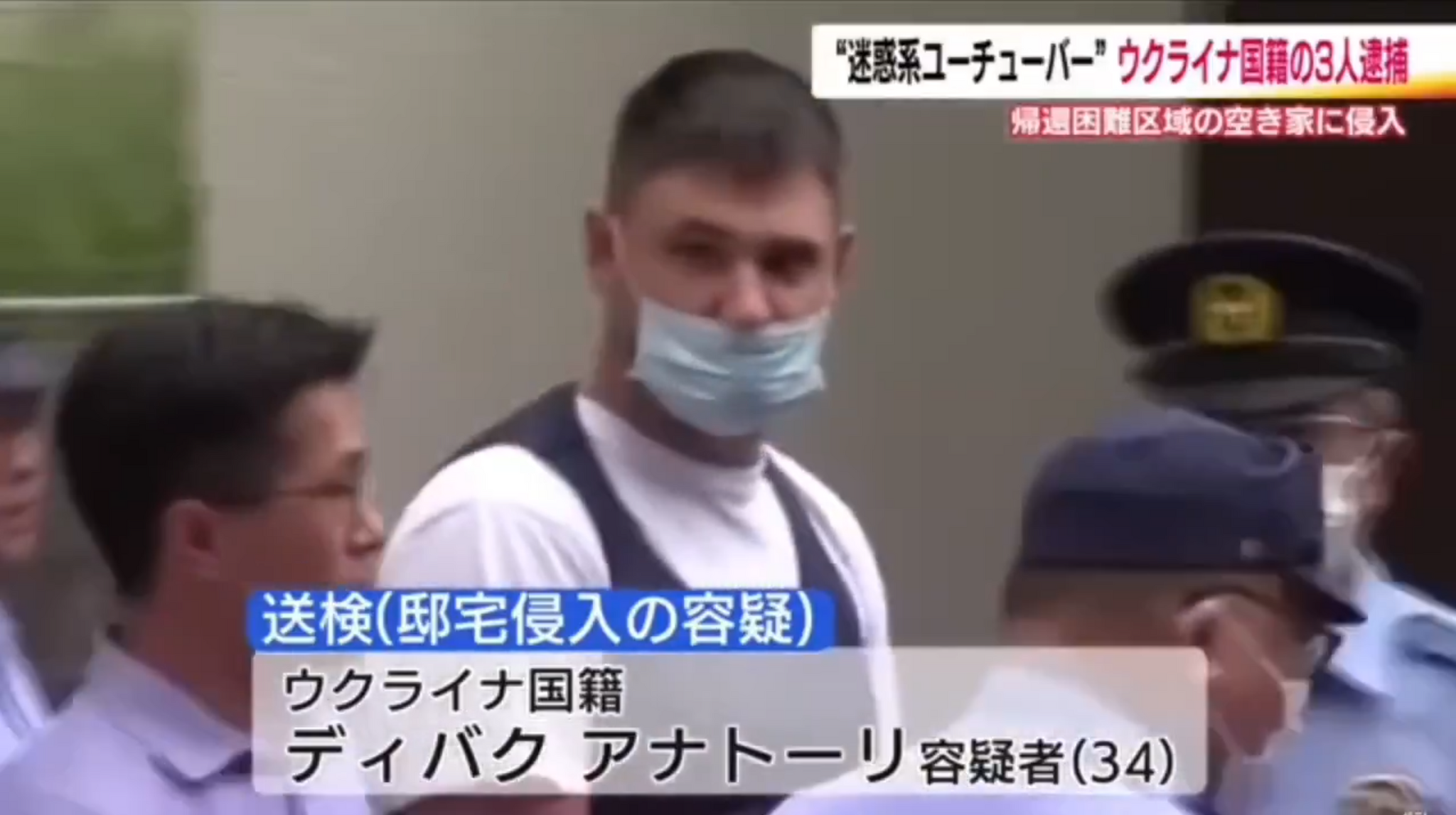 Еще про один случай вы, наверное, слышали. Сейчас он везде в новостях. Украинский блогер Kreosan, он же Александр Крюков, у которого на Youtube 6.5 миллиона подписчиков, а также блогер Вадим Вадимич с 2 миллионами подписчиков, вместе с тремя другими блогерами 23 сентября каким-то образом проникли на закрытую территорию Фукусимы. Эта территория закрыта после аварии на АЭС Фукусимы в результате землетрясения в марте 2011 года. Японцы уехали от туда из-за радиации, оставив свои вещи и дома. Креосан с друзьями вели стрим, как они залезли в один из домов, чтобы переночевать. Трогали там вещи бывших жильцов, пили чай и так далее. Японцы, которые увидели этот стрим, пожаловались полиции и 24 сентября в 7:30 утра стримеров задержали с поличным прямо в этом доме.