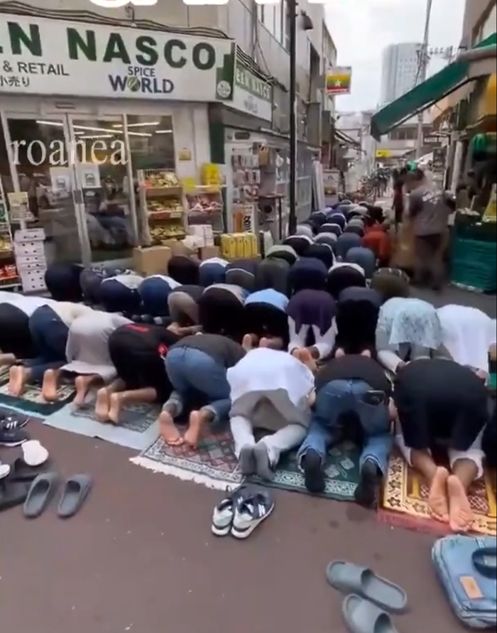 Другая тема - это насаждение мусульманской религии в Японии. Если видели видео из Европы, то в Японии теперь становится также. Молятся на улицах, просто перекрывая дорогу.