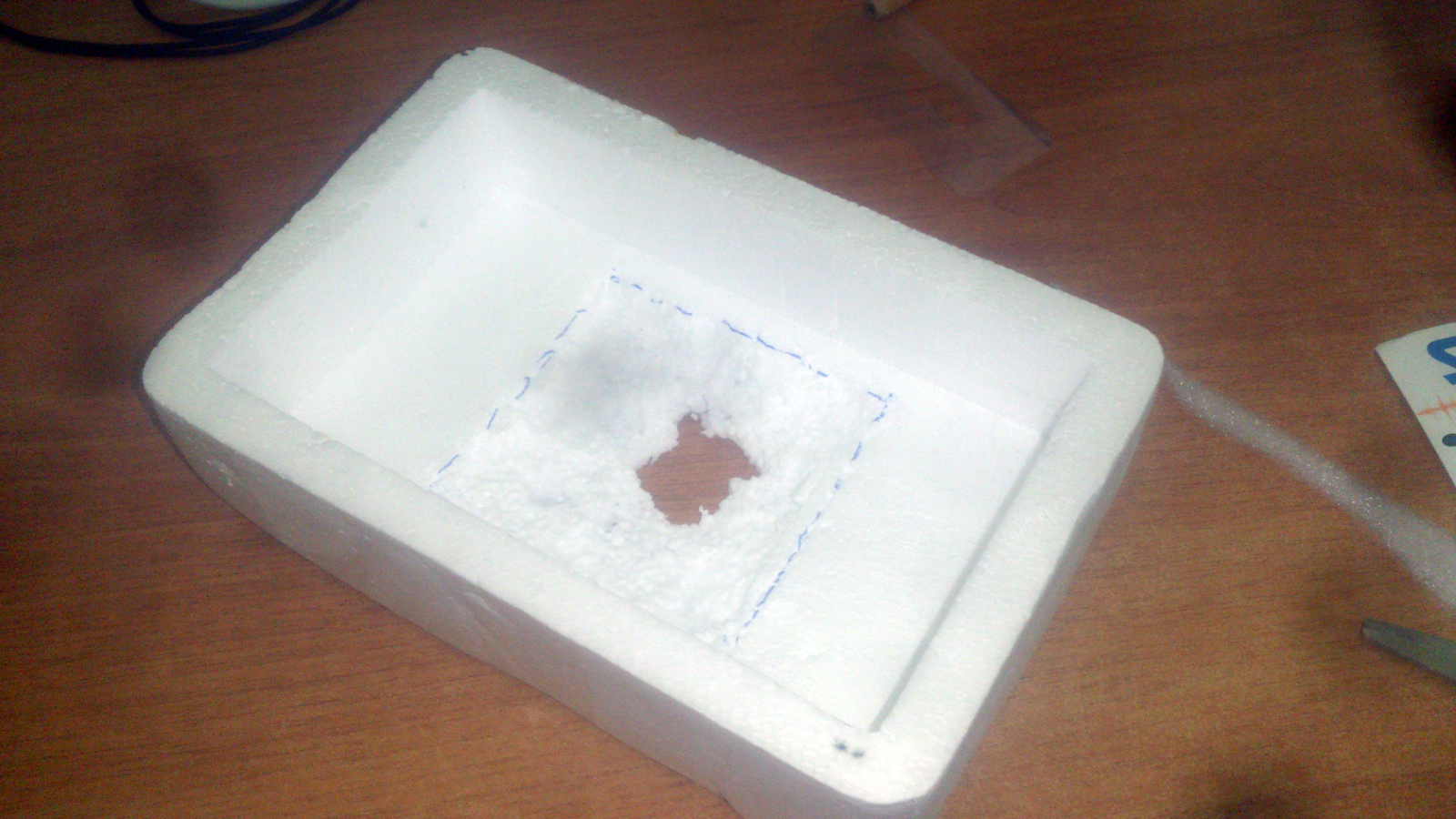 2. Так как я немного косорукий человек, то по моей задумке нужно было вырезать полость в дне коробки, чтобы подарок аккуратно влез туда и внутри было больше места, но я случайно сделал небольшую дырочку. Ну а потом я подумал, что внутри коробки нужна вентиляция (отмазка) и понял, что сделал дырку не зря и удивился какой я удачливый косорук.