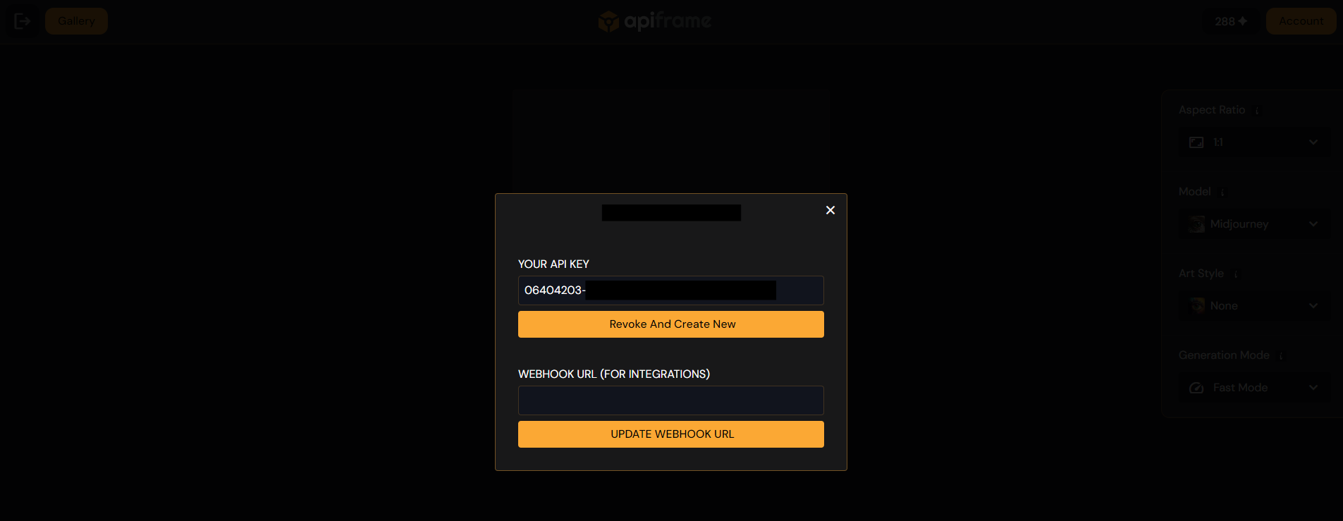 После входа в свой аккаунт APIFRAME, вы можете получить свой API ключ, перейдя в раздел "Account" на панели управления. Нажмите на кнопку "Account", чтобы увидеть свой уникальный API ключ. Важно тщательно скопировать этот ключ и хранить его в безопасности, так как он будет использоваться для аутентификации ваших запросов к API Midjourney. Если вы когда-либо потеряете или потребуется заменить ваш API ключ, вы можете сгенерировать новый через тот же интерфейс.