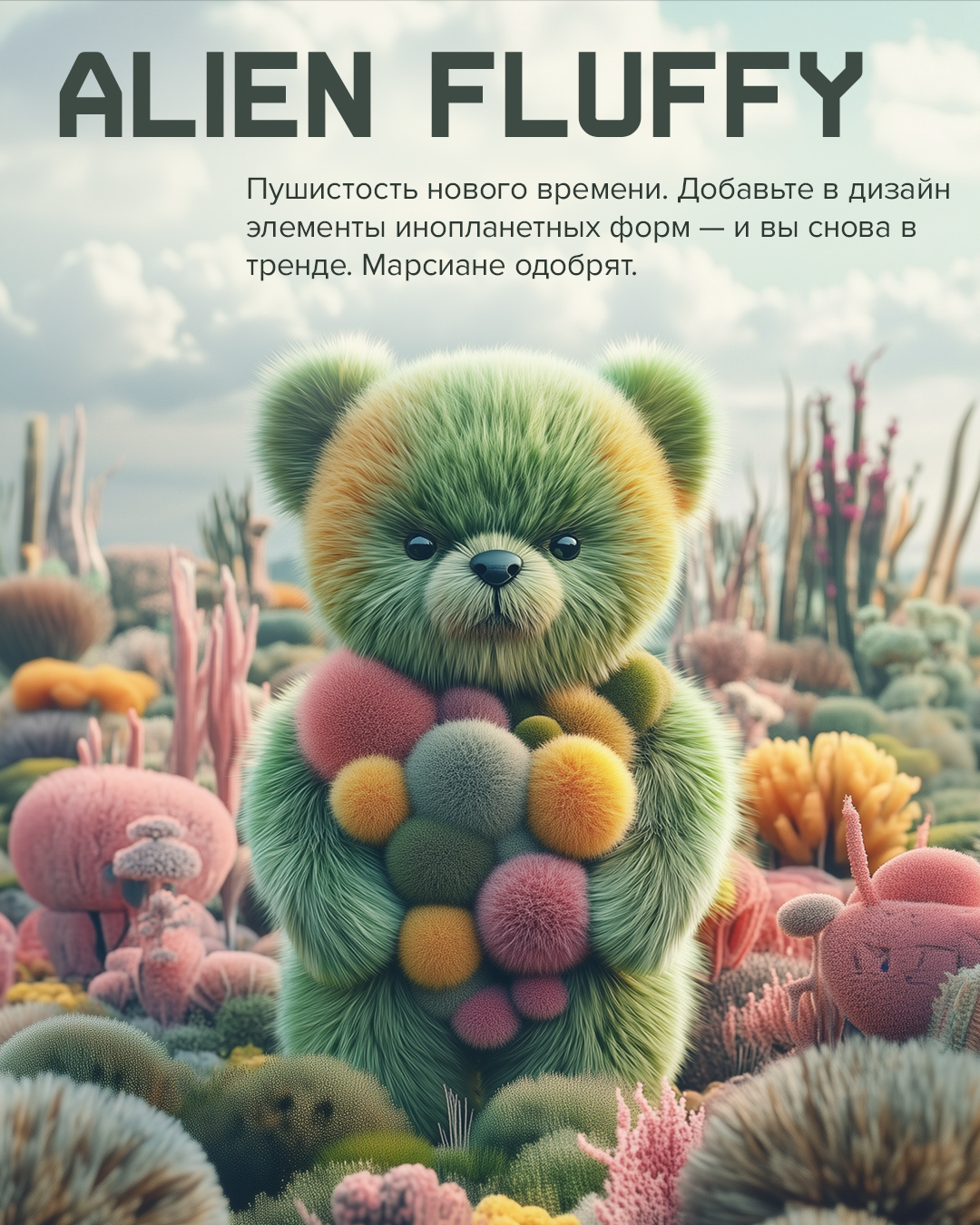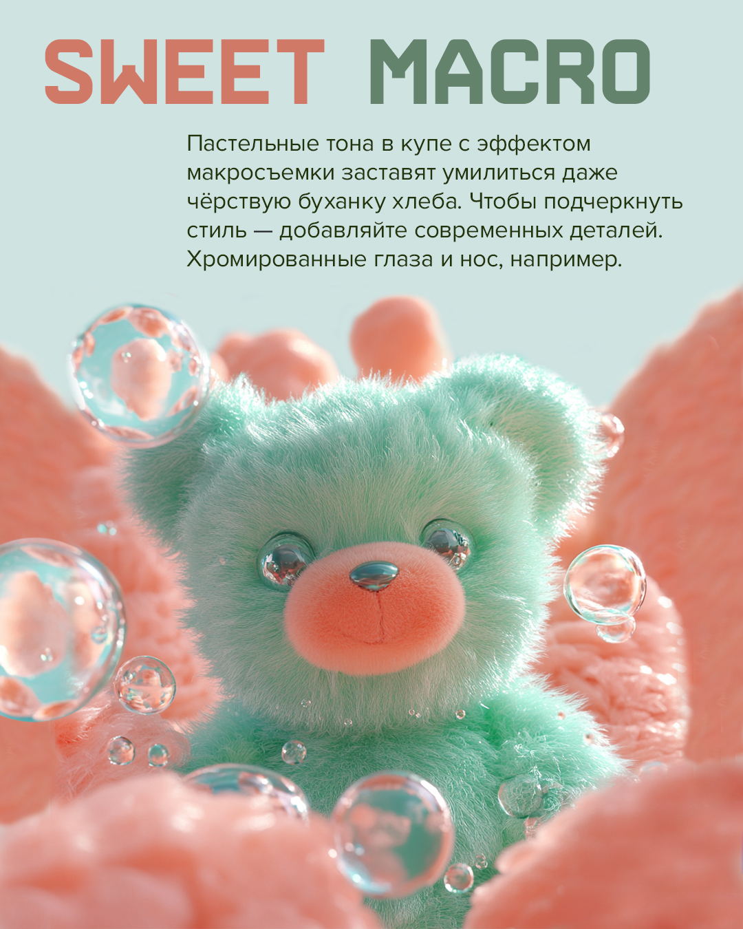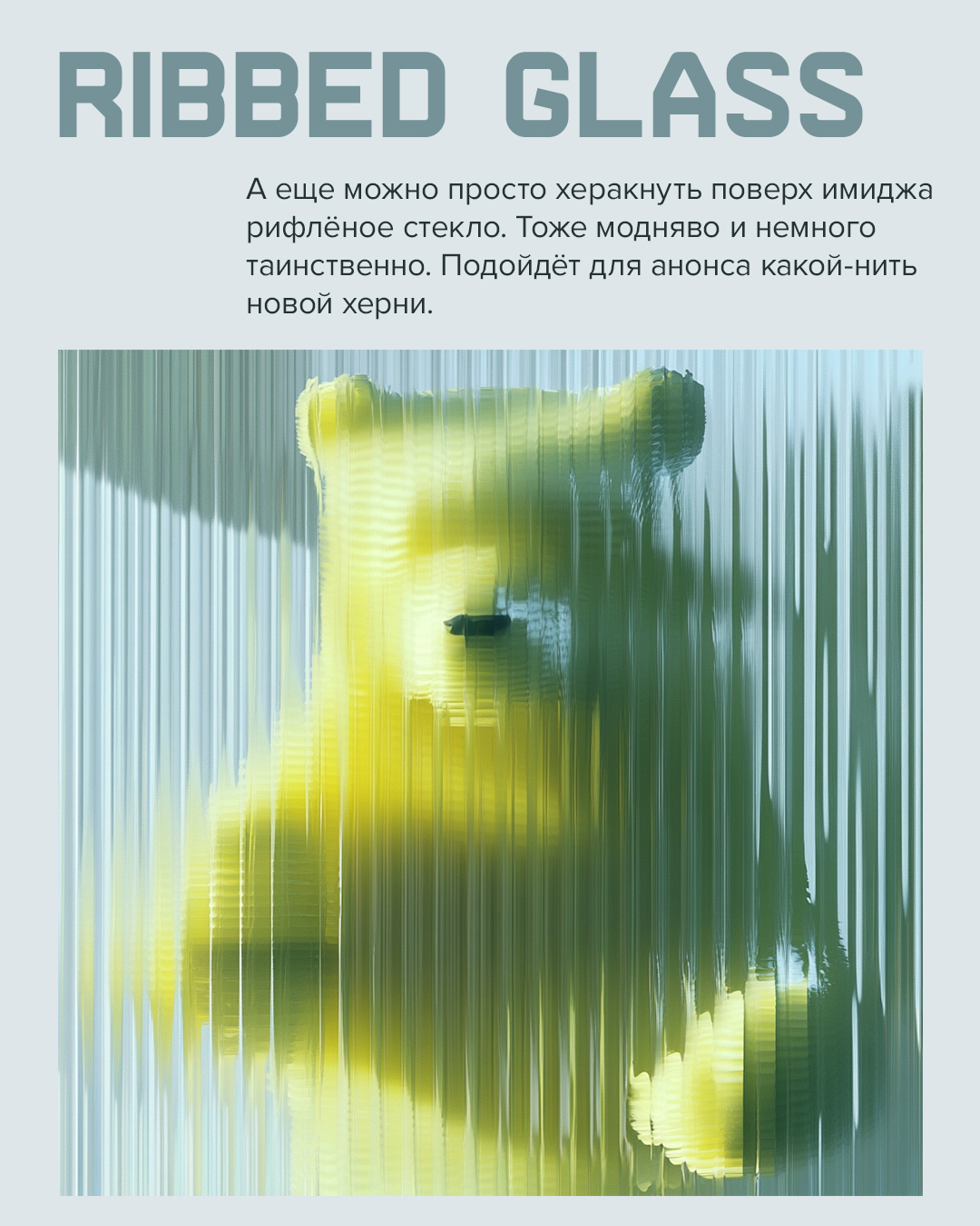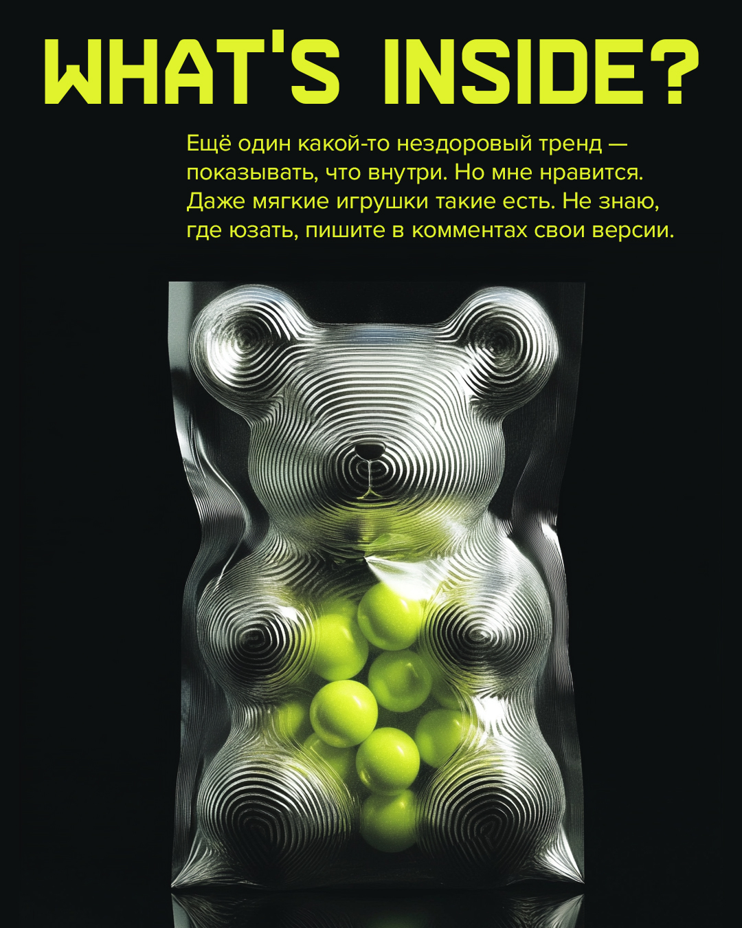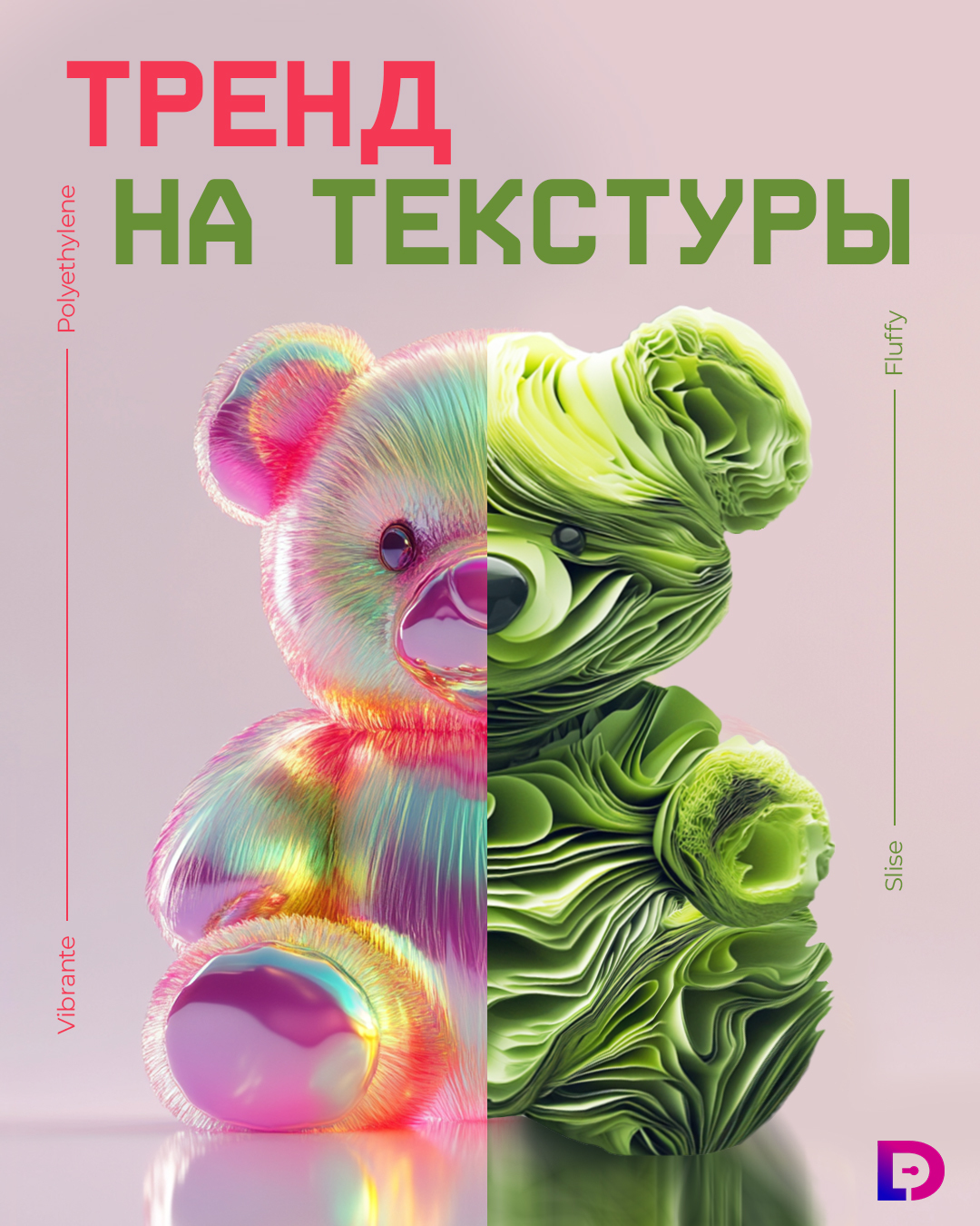 С приходом ИИ стало довольно просто получать объекты для дизайна. И все побежали делать в лоб. Нужно прорекламировать кетчуп? "ИИ, нарисуй сочные помидоры" Для того, чтобы выделиться среди кучи однотипного навоза попробуй миксовать текстуры. Это намного проще, чем придумывать гениальные каннские образы. Ты справишься. Нужно прорекламировать чай? Используй не обычные фарфоровые чашки, а земляничные, хромированные, колючие и тд. Материал отлично может отражать суть бренда.