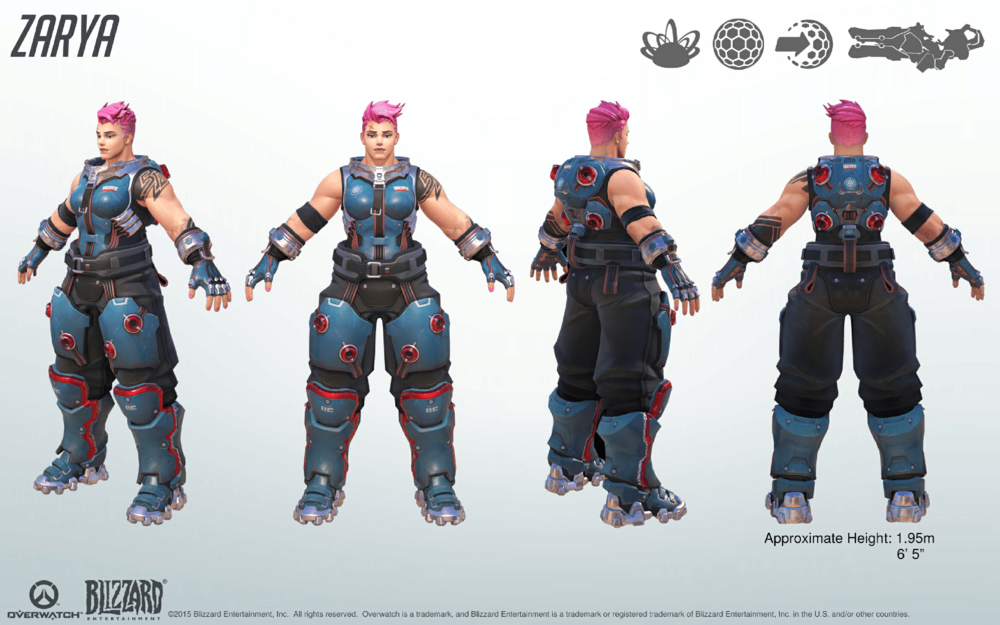 Например, Заря из Overwatch — крупная и мускулистая спортсменка, выступающая в роли танка. На первый взгляд она может показаться похожей на мужчину, но у Зари женские пропорции. Бедра больше плеч, а черты лица соответствуют женской анатомии: круглая челюсть и мягкие черты.