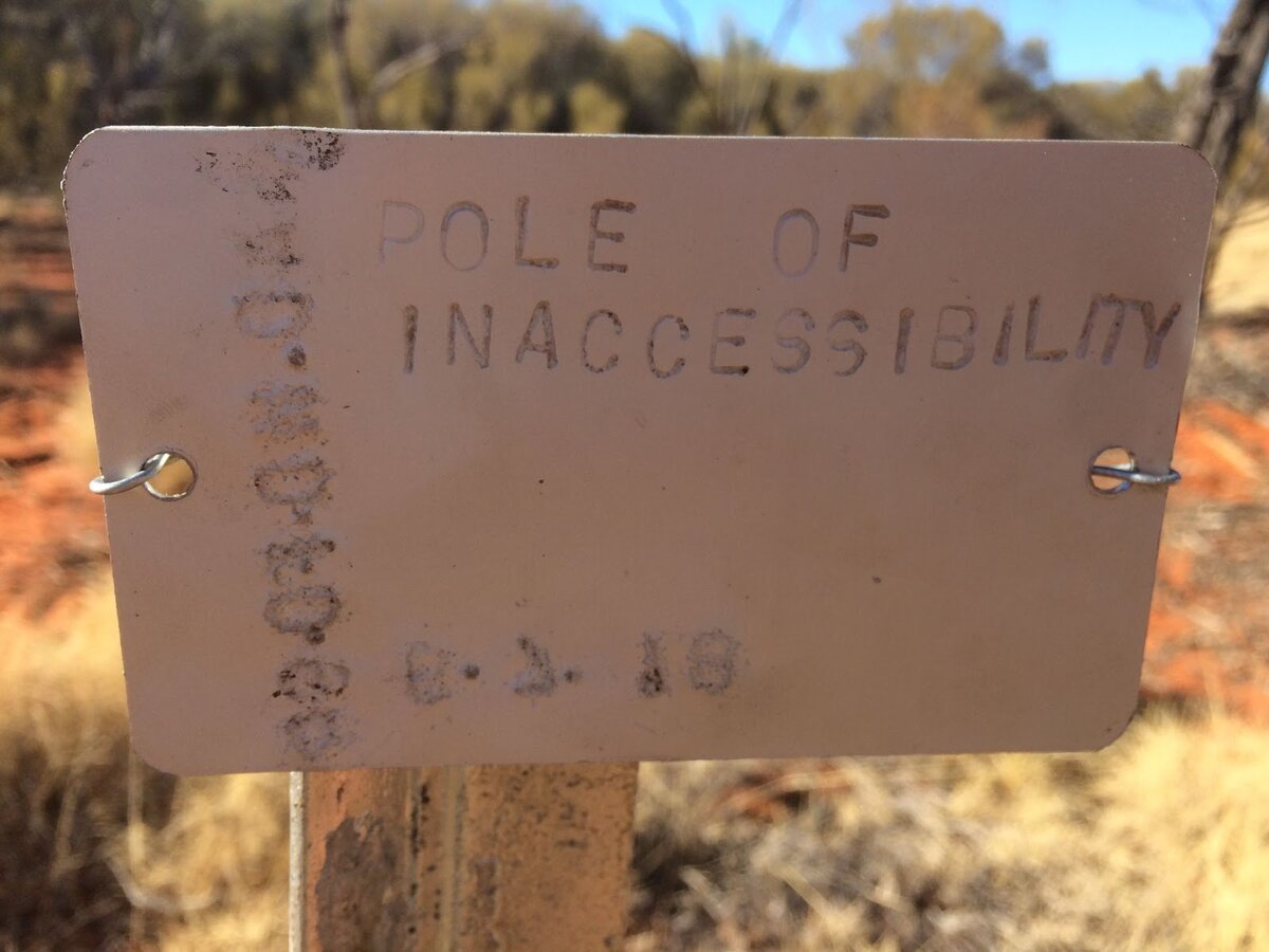 Столб и мемориальная доска, обозначающие австралийский полюс недоступности. Расположен в 160 км к северо-западу от Алис-Спрингс на удалённой станции Дервент. Это самая дальняя точка Австралии от океана