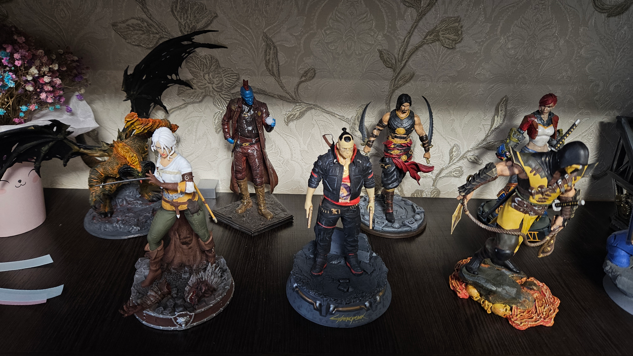Примерно так это и выглядит. За полтора года я распечатал, склеил и покрасил два десятка разных фигур, 75, 160 и 220 мм высотой, часть из которых раздарил друзьям и родне, а моя собственная коллекция из 16-сантиметровых фигурок пополнилась и ещё.