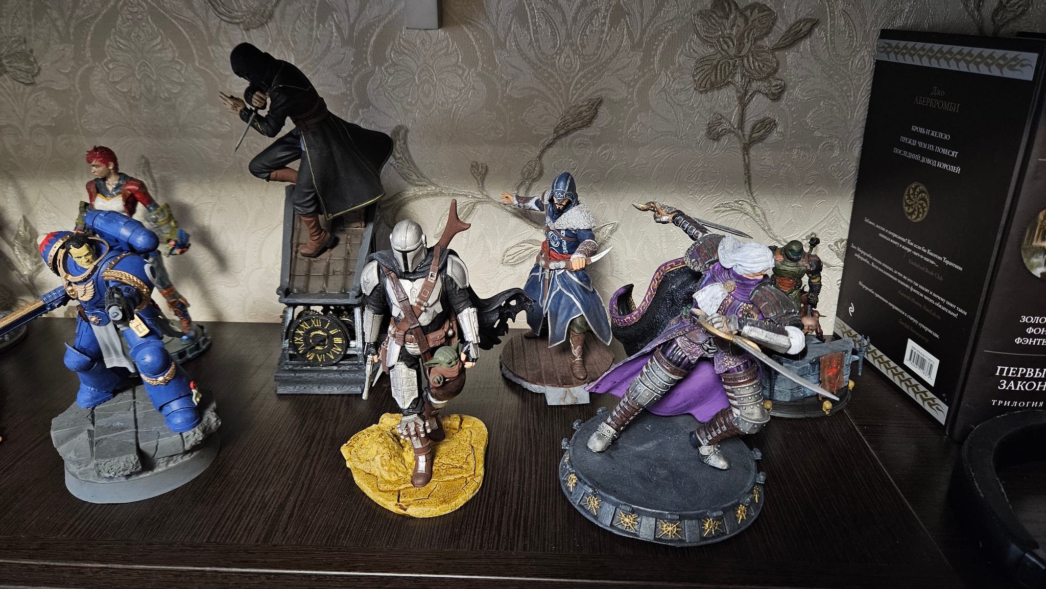 В общем, спустя почти полтора года на полке, которая была с боем отбита у семьи, появилась настоящая коллекция всего, по чему я фанатею. Игры, кино (с книгами сложнее, сами понимаете, книжные персонажи на этой полке будут казаться плоскими) и все такое. По одному персонажу на каждую из вселенных. Даже Марвел затесался, хоть я его и не то чтоб люблю.