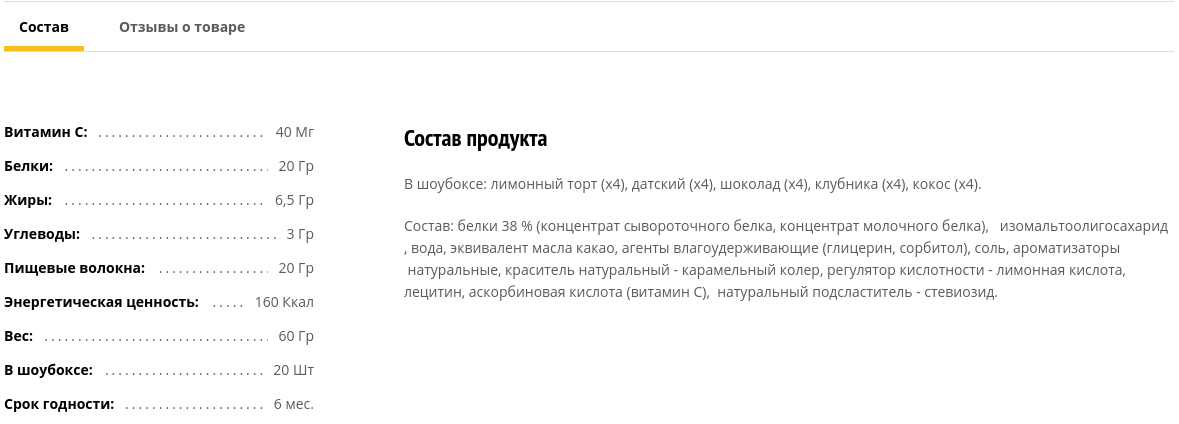 Начнем с состава, идем на сайт производителя и тыкаем в первый же набор батончиков