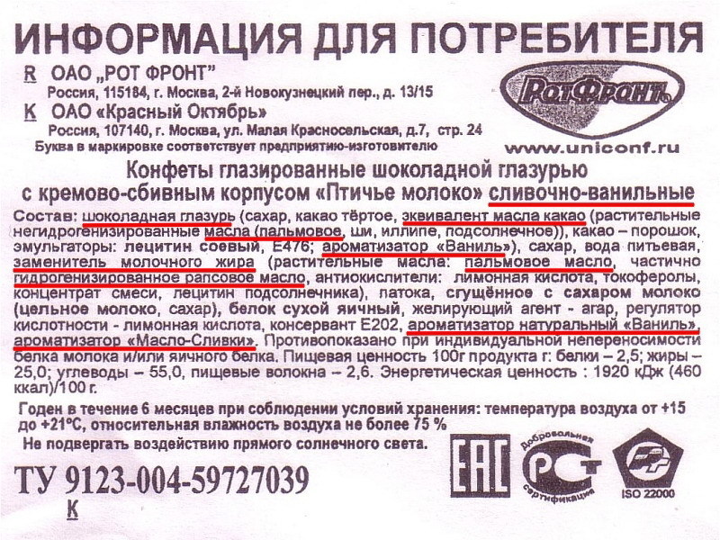 Так что, уважаемые господа на сушке и худеющие дамы - жрать подано, причем более чем на 30% заявленного каллоража (и с пальмовым маслом, об этом - ниже), потом не удивляетесь почему жир не уходит, а вес стоит.