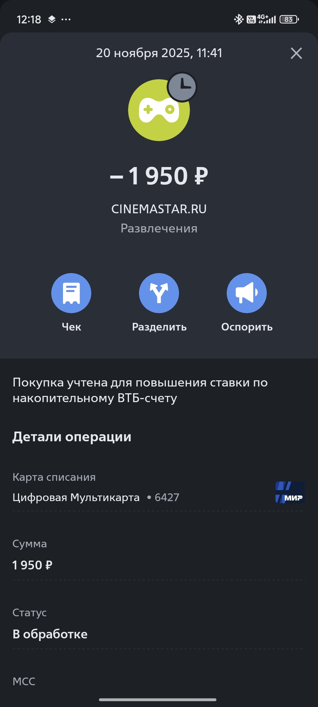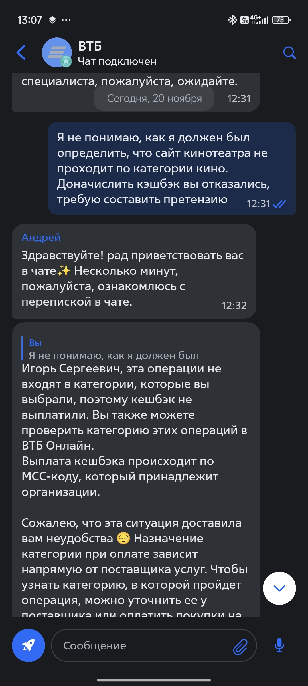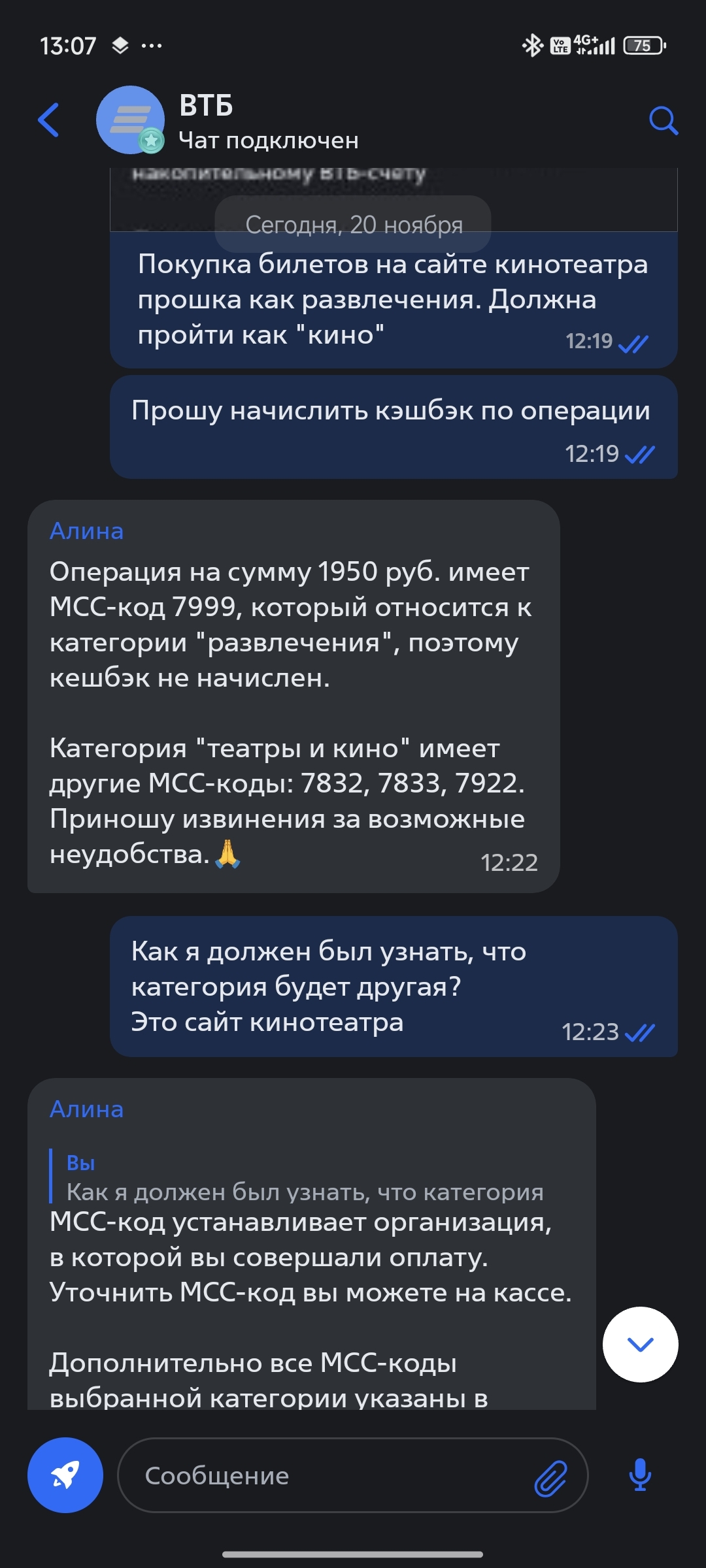Читаю тут в последнее время жалобы на ВТБ, думаю, что не может все быть так плохо. решил оплатить билеты в кино с сайта кинотеатра. Тем более категория кэшбэка выбрана "театры и кино"