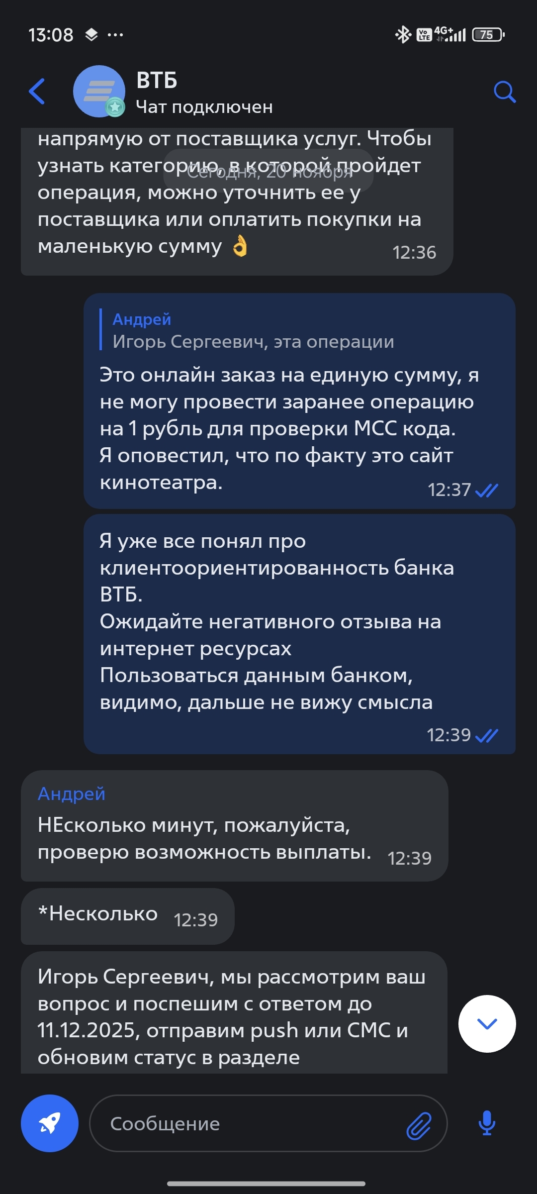 ВТБ, надеюсь, что экономия в 98 рублей стоила ухода от вас клиента