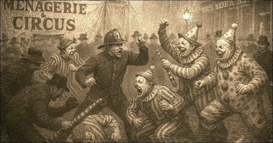 К чести клоунов, их было всего несколько, и они долго отбивались, но в итоге были просто подавлены