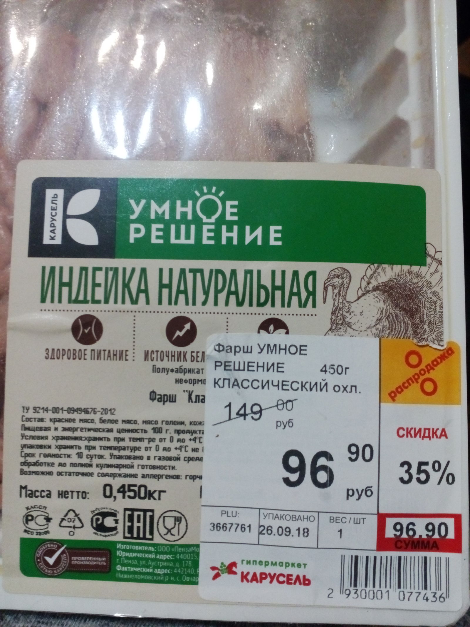 6 Extinrebok Как Карусель обманывает покупателей (или путешествие в будущее) 7 лет назад Хм, а что же под этикеткой Вот такое путешествие в будущее. Фарш "родился" на неделю позже! Молодцы! Срывать новую этикетку мало кто будет. Хитрая надпись, о том, что фарш "упакован" 26 сентября...браво Обман Магазин Обман клиентов Гипермаркет Срок годности Фарш кулинарный Уловка Этикетка Длиннопост
