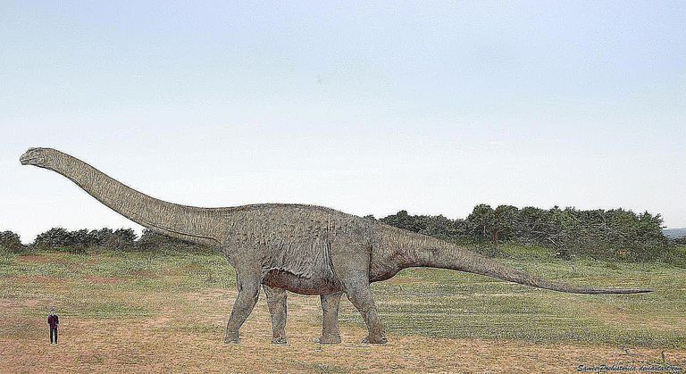 Проблема состояла еще и в том, что от него сохранилась лишь небольшая часть скелета – фрагмент ноги и несколько позвонков. С помощью сложных расчетов были восстановлены все недостающие части тела. Древнее животное имело поистине гигантские размеры – длину 40 метров и вес свыше 80 тонн, что соответствует весу примерно 15 современных слонов.