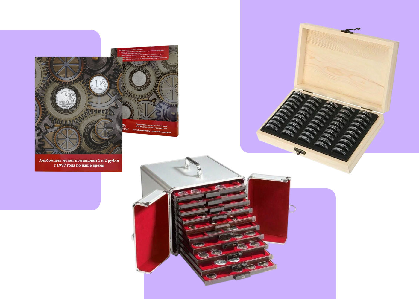 Подумайте об организации коллекции. Бюджетные и экономящие пространство варианты — картонные планшеты и альбомы с листами ПВХ. Чуть дороже — капсульные альбомы, планшеты с кейсами под капсулы или кофры с кассетами. И, наконец, самый элитный — мюнцкабинеты — ящики с выдвижными планшетами под монеты. Они подойдут для профессиональных коллекционеров.