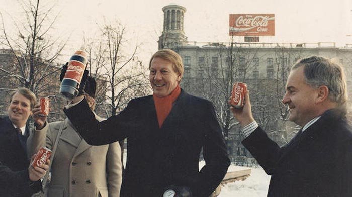 В 1989 году символом нового времени стал огромный неоновый знак Coca-Cola на Пушкинской площади в Москве. По большому счету вывеска Coca-Cola стала первой полноценной наружной рекламой в СССР: до этого улицы советских городов украшали безальтернативные предложения вроде «Летайте самолетами «Аэрофлота»!» или «Храните деньги в сберегательной кассе!».