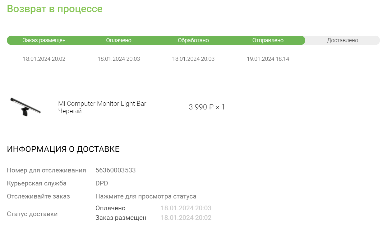 Интересный момент, при одном из телефонных разговоров с сотрудником магазина он сообщил, что деньги мне вернут только когда товар вернется к ним обратно. После того как у меня прошел шок, я сообщил сотруднику, что это неприемлемо и я отказываюсь ждать окончания разборок магазина со службой доставки.