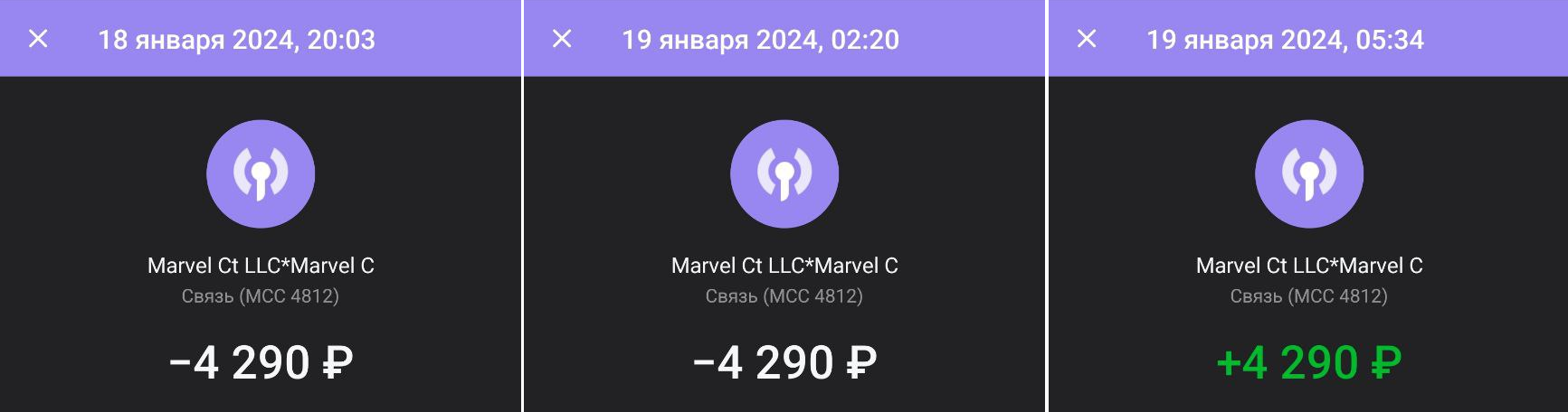 Еще один любопытный момент. Заказ был оформлен и оплачен 18 января, однако 19 января ночью эта же сумма списалась еще раз и спустя 3 с небольшим часа сумму вернули на карту. И я уверен на 146%, что данные карты я не сохранял при оформлении заказа.