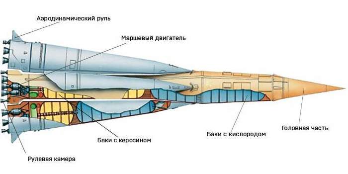 Две ступени, 33 метра высотой, 265 000 килограммов стартовой массы. Могла забросить более 3700 килограммов на расстояние до 8000 километров. Топливо — керосин, пять пакетов двигателей РД-107 и РД-108 на первой ступени и один двигатель РД-108 на второй (на первой ступени работали 32 камеры сгорания одновременно). При этом управление осуществлялось специальными рулевыми агрегатами. Это совершенно другой, более сложный уровень технологий. Стартовая тяга двигателей — более 4000 килоньютонов.