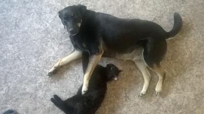 Потом приехал щенок. Первые дни она его дразнила, лёжа перед вольером.