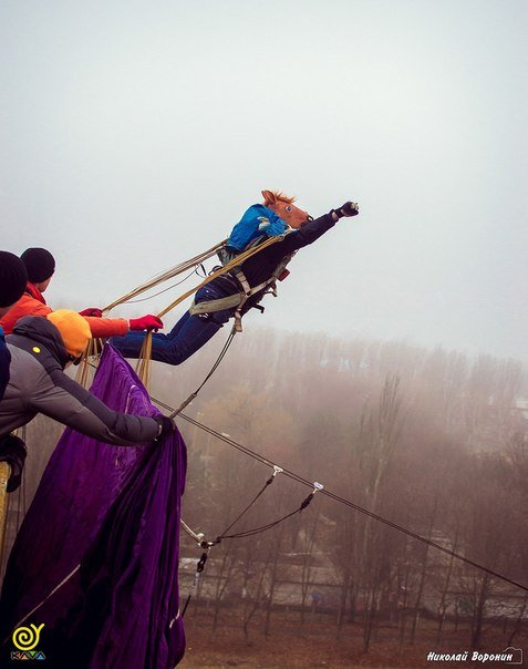 Как иснтруктор отвечаю - сложный прыжок, с необходимостью доворота и обратного нырка, что бы не попасть шеей на клеванты парашютной системы, учитывая, что видимая область в маске не больше чем с кулак - задача сложная. Повторять малоопытным роуперам не советую, т.к. делалось на свой страх и риск.