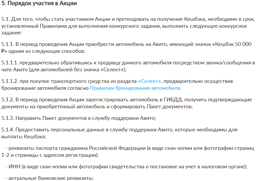 "Акция невиданной щедрости!", подумалось мне. Тем более что ключевые пункты акции были не сложные (полные правила, для информации, вот здесь: https://www.avito.ru/legal/promo/auto_cashback):