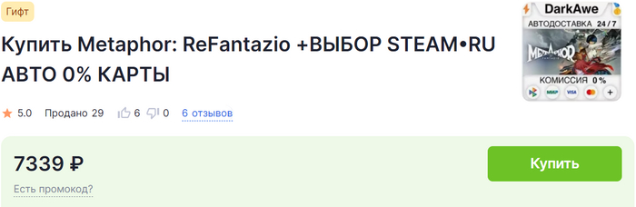 Переходим в категорию «Metaphor: ReFantazio» и выбираем подходящий товар. Также, как и в предыдущем способе, смотрим на его критерии, внимательно читаем описание и оплачиваем.