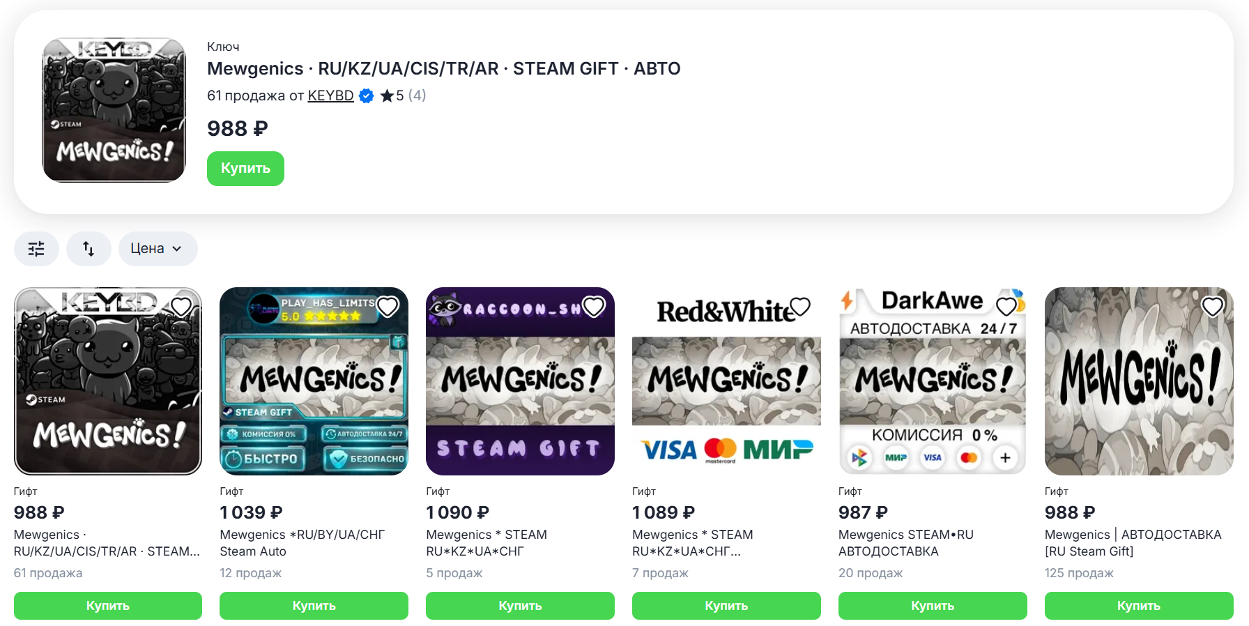 Выберите понравившееся предложение. В заголовке или описании товара должна быть пометка «Ru». Это говорит о том, что доставка подарка или активация ключа доступны на российском Steam-аккаунте. Если такого товара нет, значит в данный момент доставка возможна только на иностранные учетки.