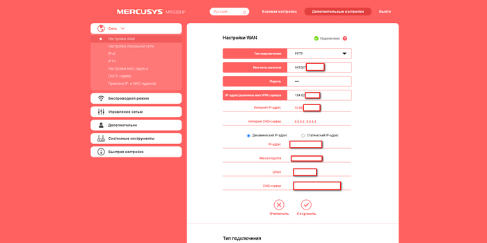 4. Дальше всё сильно зависит от модели и производителя вашего роутера. Я использую Mercusys MW330HP и настройки PPTP/L2TP. Открываем подраздел PPTP/L2TP и вводим ранее полученный ключ. Если всё прошло успешно, то вы получите данные для авторизации к вашему VPN.