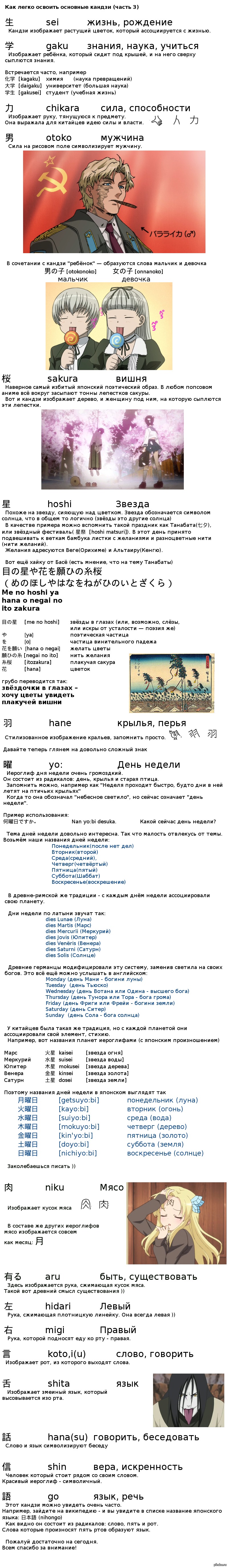 117 nikkentakabasami 10 лет назад Как легко освоить основные кандзи (часть 3) Предыдущая часть: http://pikabu.ru/story/_3132813 Японский язык Память Иероглифы Длиннопост Аниме