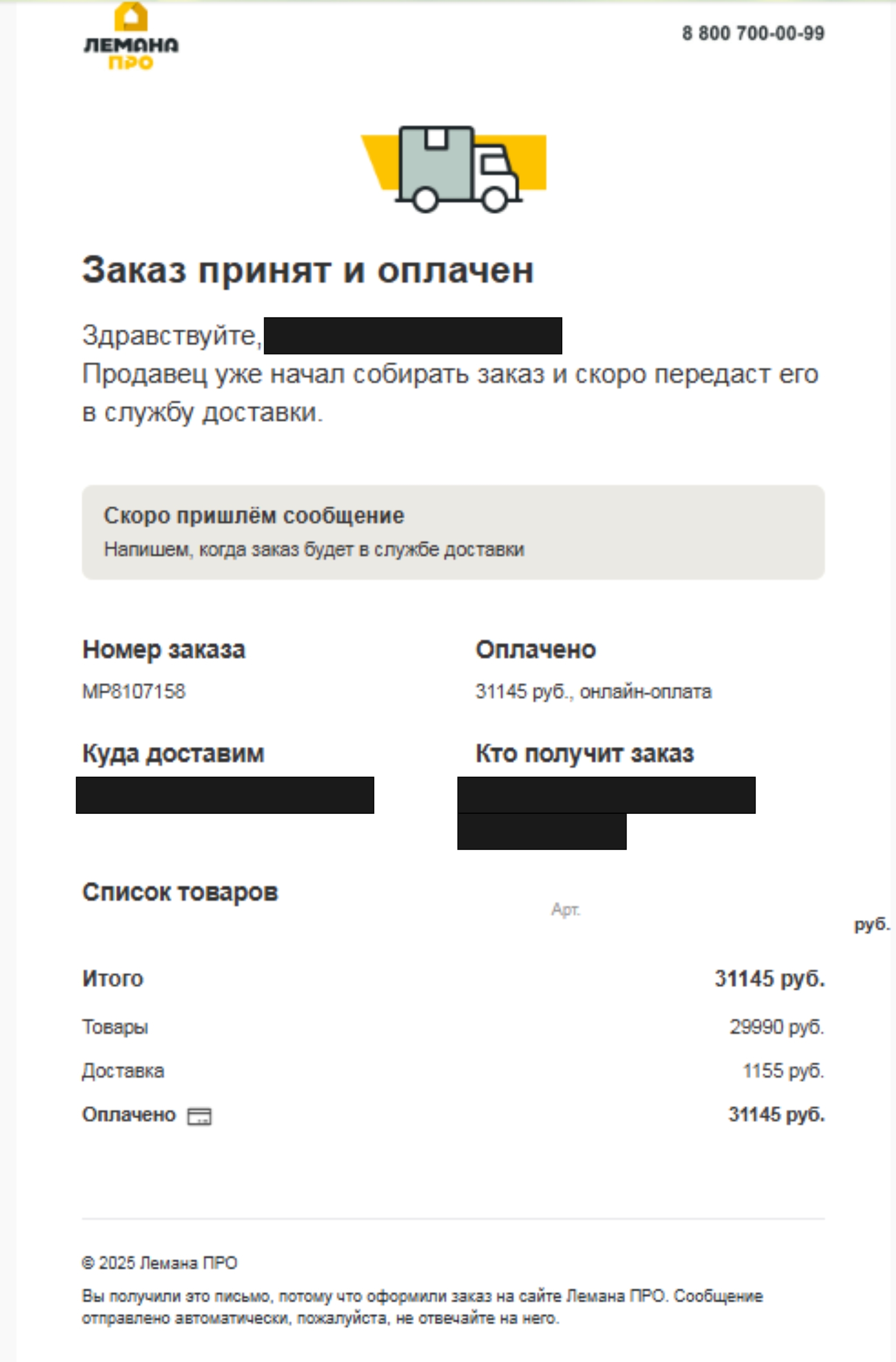 Потом через пару дней Лемана уведомил, что заказ задерживается и переносится на 3 декабря. Ну ок подумал я, бывает, предновогодняя суета на складах.