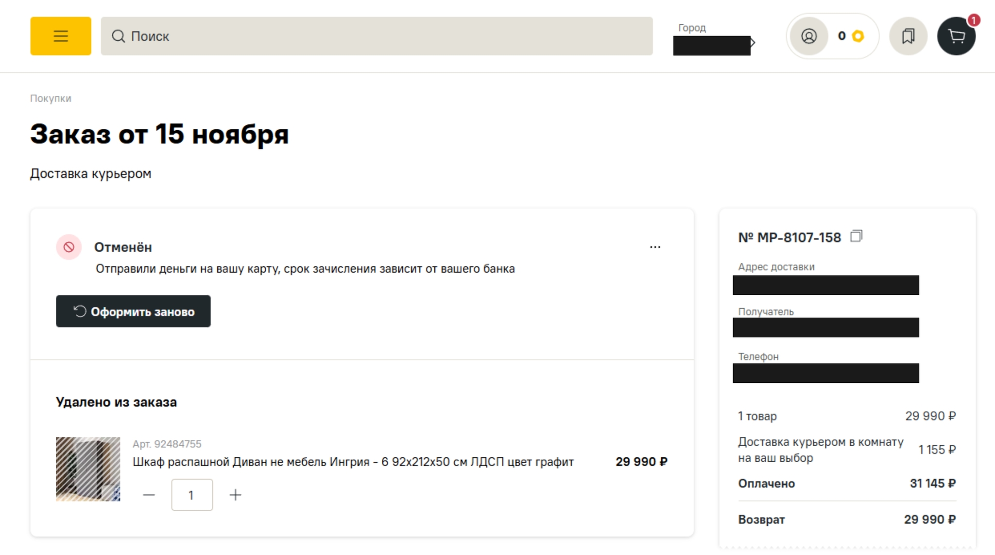 На мой вопрос поддержке - а какого х? Они ответили - мол этот товар доступен только для онлайн заказа и продавцом является производитель этой мебели, а доставщик вообще ПЭК и это у них там что-то поломалось и мы отменили заказ, у нас лапки. Если нужен шкаф оформите заново.